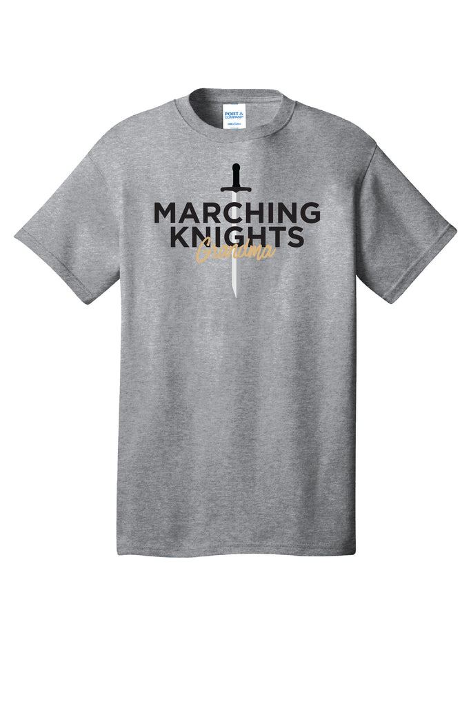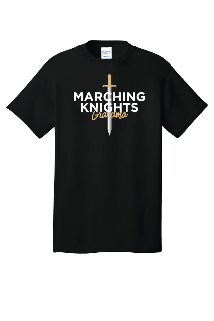 NEW FOR THE '25-'26 Season! SHORT-SLEEVED, 100% Cotton unisex t-shirt. Screenprinted on the front with Marching Knights "Grandmother" imprint. Be sure to select your CHOICE of black or gray.